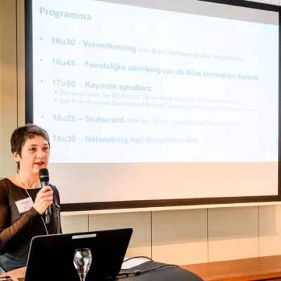 After a warm welcome by Bart Huybrechts (Managing Director of MCA) and Ann Overmeire (COO of Blue Cluster), the attendees were able to follow the Blue Innovation Awards ceremony in Dubai live and vote for the Inspirational Blue Wave award.
