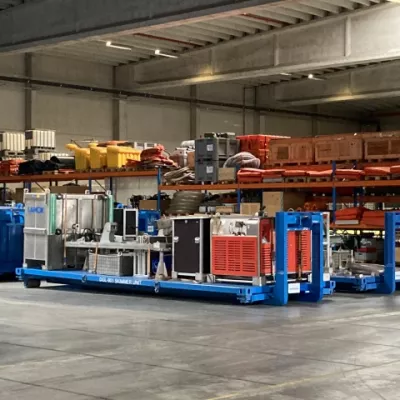 The specialised material includes various systems to mechanically recover floating oil spills. These systems include floating oil screens, recovery and pumping systems, as well as storage tanks. If chemical treatment is required, spray systems and dispersants are used.