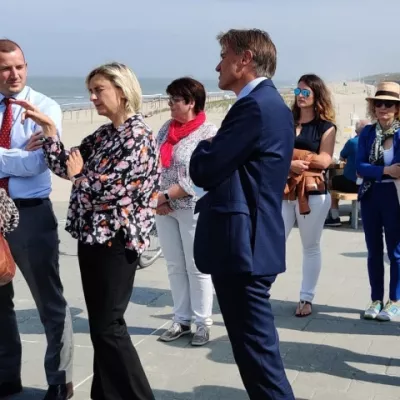 This was followed by a demonstration of an offshore wind farm control room, an explanation of the Blue Accelerator, which is a maritime innovation and development platform located off the coast of Ostend, as well as a visit to a project in which marram grass is planted to create new dunes preventing sand from landing on the esplanade.