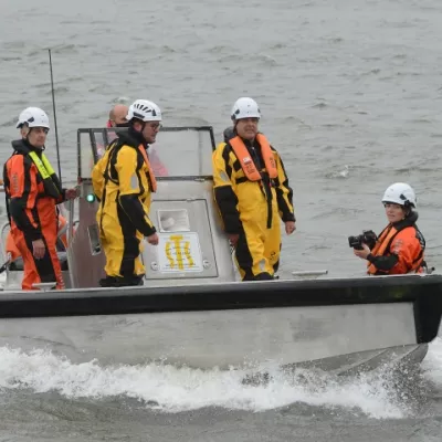 Once we reached the Ostend West Bank, we made our way towards the Royal North Sea Yacht Club. Once there, Minister Van Quickenborne changed his shoes and put on appropriate clothing to explore the port by boat.