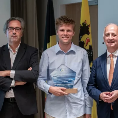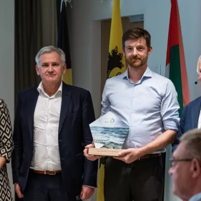 Inspiring projects in the blue economy were put in the spotlight during the second edition of the Blue Innovation Awards. The winners were: Leveraging AI for carbon-neutral shipping (Toqua); MANTA-line (Bexco); MPVAqua (Tractebel, Jan De Nul, DEME, Soltech and Ghent University); Port of Antwerp: The Echodrone & more (Port of Antwerp) and A triple helix approach for innovation in the Belgian Navy (Belgian Navy).